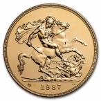 1987 年 イギリス ゴールド 5 ポンド エリザベス 2 世 BU 修正された人形