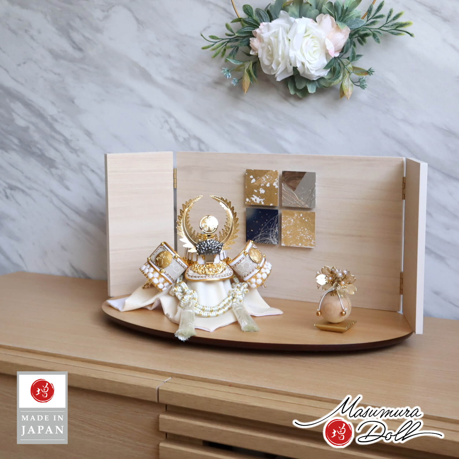 五月人形 コンパクト おしゃれ インテリア 兜飾り 5月人形 端午の節句 ホワイト ゴールド 武将 徳川家康 増村人形店 MMN1641