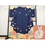 平和屋本店●極上 人形作家・ホリヒロシ 訪問着 手描き 絞り 雪輪跳兎花文 濃紺地 鈴乃屋扱い 逸品 CYAA4935s6