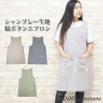 エプロン チュニック ゆったり かぶるタイプ おしゃれ シャンブレー 綿100% 丈夫 シンプル 無地 保育士 介護 かぶり 横ボタン ワークエプロン ナチュラル 作業