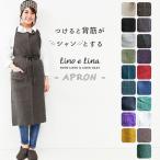 エプロン おしゃれ 大人 通販 フルエプロン レディース 保育士 ナチュラル シンプル ミドル 麻 リネン 介護士 かぶり リーノエリーナ Lino e Lina エプロン