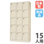 法人限定 搬入設置 シューズロッカー 15人用 3列5段 中棚付 シリンダー錠 下駄箱 シューズボックス 玄関収納 業務用 会社 完成品 日本製 SLK-1535-TNG