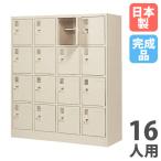 法人限定 搬入設置 シューズロッカー 16人用 4列4段 中棚付 シリンダー錠 下駄箱 シューズボックス 玄関収納 業務用 会社 完成品 日本製 SLK-1644-TNG
