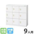 法人限定 窓付シューズボックス ライオン事務器 3列3段 9人用 内筒交換錠 Kタイプ 中棚付 ホワイト 窓付き 下駄箱 ロッカー オフィスロッカー WKB33-09K