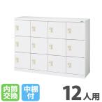法人限定 窓付シューズボックス ライオン事務器 4列3段 12人用 内筒交換錠 Kタイプ 中棚付 ホワイト 窓付き 下駄箱 ロッカー オフィスロッカー WKB43-12K