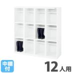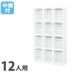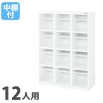 法人限定 オープンシューズボックス ライオン事務器 4列3段 12人用 長ぐつ用 中棚付 幅1200×奥行380mm×高さ1250mm ホワイト オフィスロッカー OKBL43-12