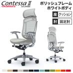 設置無料 コンテッサ セコンダ オカムラ 固定肘 座クッション ランバーサポート付 大型ヘッドレスト ポリッシュフレーム ホワイトボディ PCチェア CC47BZ