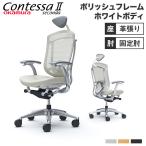 設置無料 コンテッサ セコンダ オカムラ 固定肘 座革 ランバーサポート付 小型ヘッドレスト ポリッシュフレーム ホワイトボディ オフィスチェア CC4CBZ-FPT