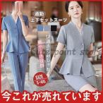 上下セットスーツ 理容室 ネイルサロン クリニック 介護 事務 受付 事務服 オフィス スーツ 接客 可愛い レディース 女性 制服おしゃれ パンツ
