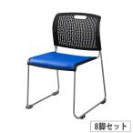 法人限定 LEO スタッキングチェア レザー張り ブルー8脚セット ライオン事務器 ブルー PVCレザー 肘なし 背付 スタッキング 作業チェア 会社 LE-1662S-S