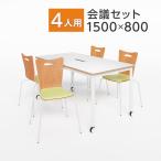 法人様限定 会議テーブルセット 4人用 テーブル チェア 会議テーブル おしゃれ メティオ 1500×750 デザイナーズチェア ローバック