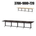 法人様限定 フリーアドレスデスク 6人用 会議用テーブル ミーティングテーブル 会議机 T字脚 3700×1000mm 配線ボックス付 ナチュラル ダークブラウン