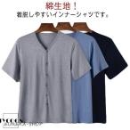 綿 インナーシャツ 半袖 前開き Vネック 高齢者 インナーシャツ 肌着 介護用 トップス ルームウェア 部屋着 入院 Tシャツ 下着 無地 紳士 全