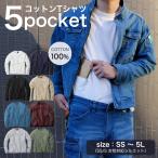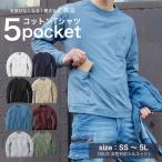 【特価SALE】5つのポケット コットン Tシャツ 長袖 綿100% 厚手シャツ ジャケットTシャツ インナートップス インナーTシャツ 無地Tシ