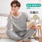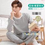 パジャマ メンズ 長袖 春夏秋冬 柔らかく快適 上下セット ボーダー ルームウエア おそろい 父の日 綿 軽い 薄手 快適Tシャツ 部屋着
