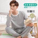 パジャマ メンズ 長袖 春夏秋冬 柔らかく快適 上下セット ボーダー ルームウエア おそろい 父の日 綿 軽い 薄手 快適Tシャツ 部屋着