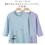Tシャツ Tシャツ クールネック トップス インナーシャツ 7分袖 前開き ルームウェア 部屋着 肌着 無地 吸汗性 入院 手術 介護用 レディース