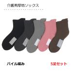 靴下 レディース 5足組 介護用 パイル編み 厚地 ウール混 名前が書ける 暖かい ゆったり クルー丈ソックス 冬物