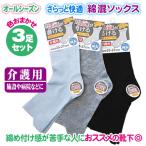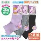 介護用ソックス レディース 3足セット 敬老の日 お中元 綿混 口ゴムゆったり 広い履き口 病院用 片手で履ける(色お任せ) C73