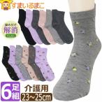 靴下 レディース 介護用 名前が書ける 綿混 ゴムなし ゆったり ロークルー丈 ソックス 6足 セット 23〜25cm おまかせ 無地 花柄 set1463