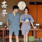 甚平 パジャマ メンズ ス ルームウェア 半袖 上下セット トップス パンツ Vネック 前開き 寝巻き 寝巻 お風呂 ペアルック ユニセックス 無地