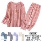 パジャマ レディース 長袖 秋 かわいい 前開き ダンボールニット 無地 春 丸首 大人用 部屋着 ルームウェア ロング丈 介護 授乳 産後 上下セット w3-77518