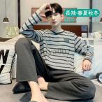 爆買 パジャマ メンズ 長袖 春夏秋冬 柔らかく快適 上下セット ボーダー ルームウエア おそろい 父の日 綿 軽い 薄手 快適Tシャツ 部屋着