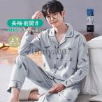 爆買 パジャマ メンズ 綿 長袖 薄手 ルームウェア 上下セット無地 シンプル 前開き 衿付き 春夏秋 男性 寝巻き