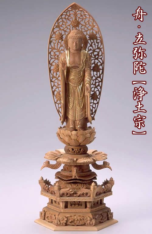 【スーパーSALE!10%OFF】仏像 【白檀製】 六角ケマン台座 4.5寸(高さ:350mm)「舟立弥陀」木彫 仏像販売 通販 浄土宗 高さカテゴリ:350mm〜399mm