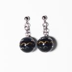 有田焼伊万里焼で知られる陶芸磁器小玉下がりピアス。黒釉波紋様