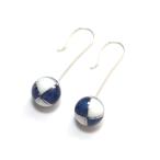 有田焼伊万里焼で知られる陶芸磁器小玉下がりピアス。染付四方割紋様。