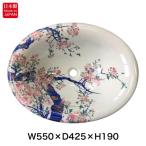洗面ボウル おしゃれ 有田焼 染錦金彩桜絵 楕円 W550