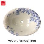 洗面ボウル おしゃれ 有田焼 染付藤絵 楕円 W550