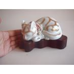 明治時代 金襴手色絵 眠り猫15cm 眠猫 置物 時代物 古伊万里 九谷 薩摩