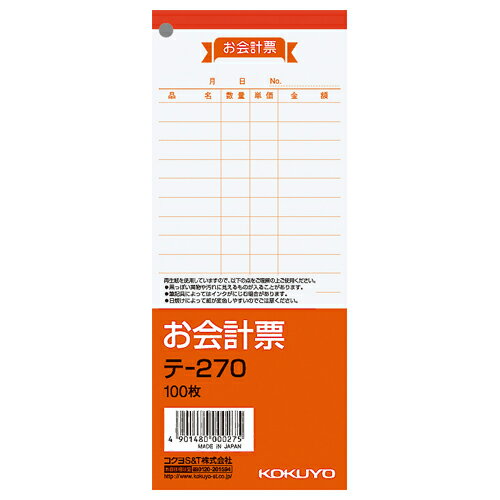 コクヨ お会計票 177×75mm 単票 100枚 テ-270 1セット(10冊)