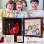 金婚式 お祝い 贈り物 プリザーブドフラワー 時計 花時 似顔絵ポエム 似顔絵 4人用 ネームインポエム 名前詩 プレゼント 両親 銀婚式 結婚記念日 結婚祝い