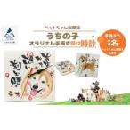 ふるさと納税 《ペットちゃん似顔絵》うちの子オリジナル手描き掛け時計(手描き2名)044013 ペット 犬 猫 時計犬 猫 時計 石川県小松市