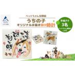 ふるさと納税 《ペットちゃん似顔絵》うちの子オリジナル手描き掛け時計(手描き3名)052011 ペット 犬 猫 時計犬 猫 時計 石川県小松市