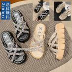 【2足で25%OFF+送料無料】サンダル レディース 日本製 痛くない 歩きやすい 履きやすい 軽量 疲れない ストラップ クロスベルト ウェッジソール ローヒール ぺたんこ ゴムフィットサンダル
