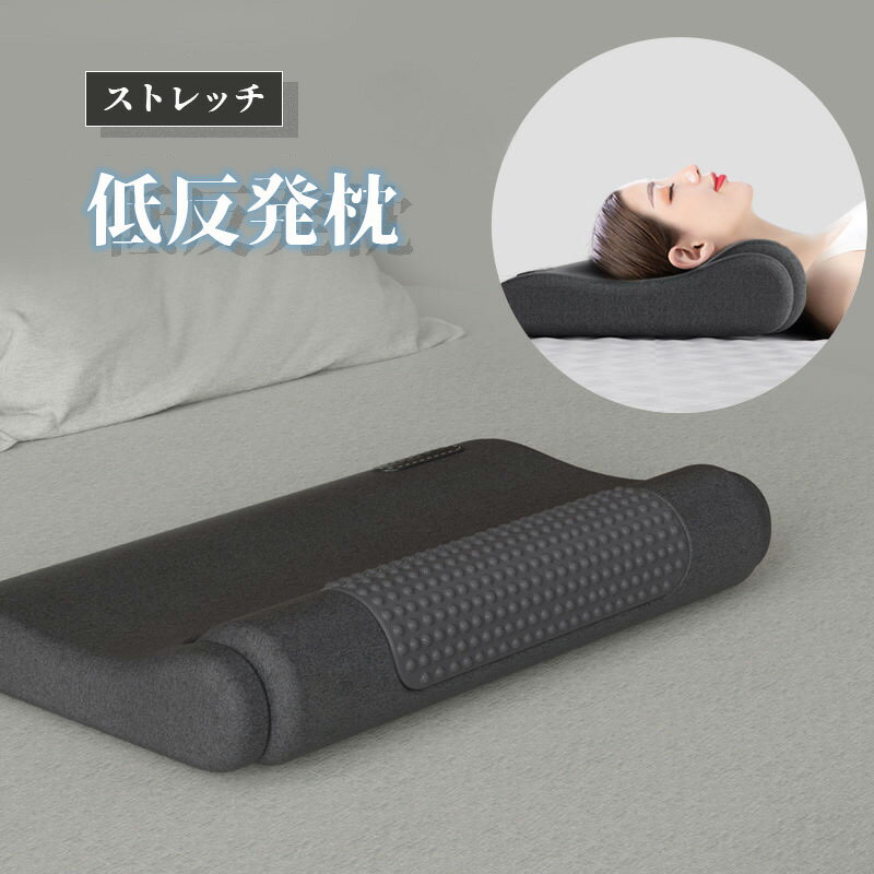【1点6%、2点11%OFFクーポン】安眠枕 低反発まくら ネックピロー ストレッチ 首枕 低反発枕 頭・肩を支える 快眠枕 枕 pillow 二段階の選べる高さ 通気性 カバー洗濯可 肌触り良い 子供大人兼用 ブラック(長55*幅35*高7/10CM) 父の日 ギフト プレゼント