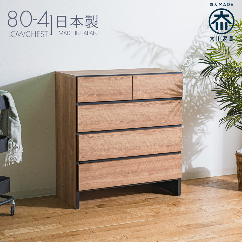 1日限定15%offクーポン ローチェスト 大川家具 幅80 4段 完成品 おしゃれ 木製 北欧 白 ホワイト 高さ89 脚付き モダン 五段 ランドリー 日本製 ナチュラル 体重計収納 国産品 スライドレール 組み立て不要 お掃除ロボット対応