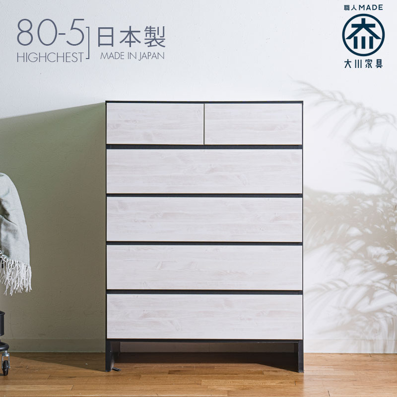 1日限定15%offクーポン ハイチェスト 大川家具 幅80 5段 完成品 おしゃれ 木製 北欧 白 ホワイト 高さ108 脚付き モダン 五段 ランドリー 日本製 ナチュラル 体重計収納 国産品 スライドレール 組み立て不要 お掃除ロボット対応