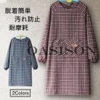 スモック エプロン 割烹着 作業服 チェック柄 仕事着 防油 うわっぱり 大きいサイズ 長袖 汚れ防止 耐摩耗性 脱着簡単 料理