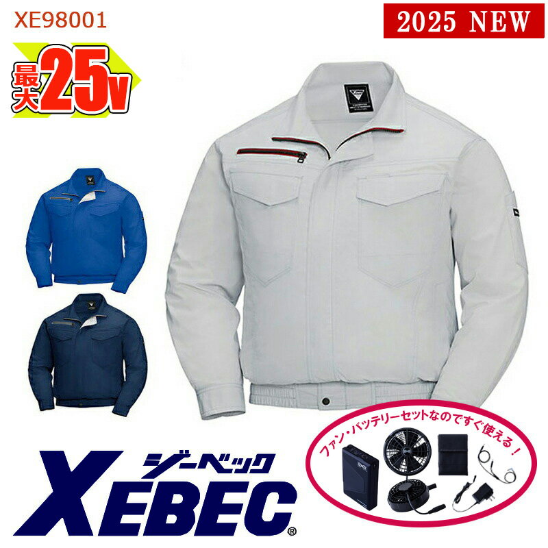 【 空調服® 25V 2025新セット 】長袖 ブルゾン XE98001-SET 大容量バッテリー 急速アダプター ファン付き ジーベック 作業服 作業着 空調作業服 [サイドファン] [返品・交換不可]
