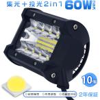 【マラソン限定500円OFFクーポン】改良版 作業灯 led ワークライト 8V〜60V 12V 24V チップ20連 集光+投光 2in1 リフレクター 防水 IP67 PL保険 60W トラック/ダンプ用 瞬間点灯 ホワイト「10個セット」送料無料 2年保証