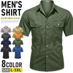 ミリタリーシャツ メンズ 半袖 作業着 ワークシャツ シャツ カジュアルシャツ アメカジ トップス 胸ポケット付き 無地 春服