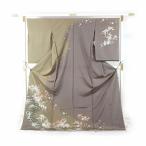 豪華手刺繍 訪問着 袷フルオーダー手縫いお仕立て付き 枝垂れ桜に花籠 こげ茶色 身長168cmまで、裄69.5cmまで 結婚式・披露宴・パーティ・お