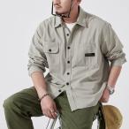 シャツ メンズ 長袖 ワークシャツ ミリタリーシャツ ポケット付き 作業着 ウォッシュ加工済み 柔らかい 羽織り カバーオール 秋冬