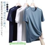 クールコア 半袖 Tシャツ 接触冷感 夏用 涼しい トップス クルーネック 吸汗速乾 UVカット メンズ メッシュ スポーツ 作業服 作業着 ランニン