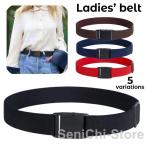 ベルト レディース 女性用 ワンタッチバックル シンプル カジュアル おしゃれ 無地 単色 伸縮 ゴムベルト ストレッチ プラスチックバックル 作業着